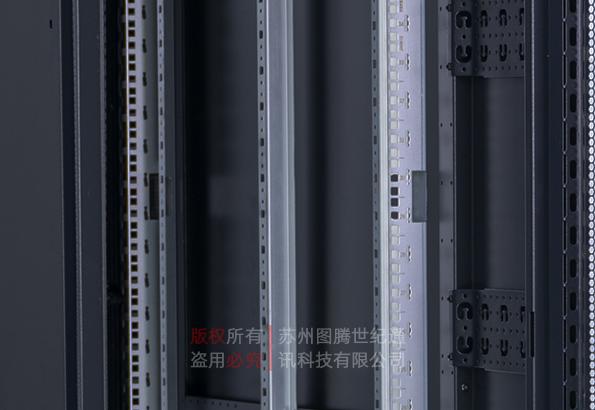 配置:前门单开六角网孔门,后门双开六角网孔门,配二段式侧门,顶盖底板开系列过线孔配橡胶盖。前门左右两侧配有鱼骨理线的走线通道,后门左右两侧共配6块扎线/PDU固定片,螺钉螺母50套,脚轮4只,扳手1只。在标准柜基础上,底板靠后门位置额外开3个过线孔并配盖板。